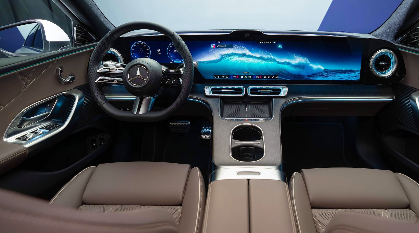 Dacă exteriorul impresionează, interiorul noului Clasa C Electric este o adevărată vitrină tehnologică. Mercedes-Benz a integrat pentru prima dată în acest segment MBUX Hyperscreen de 39.1 inch, o suprafață de sticlă care acoperă aproape întregul bord.